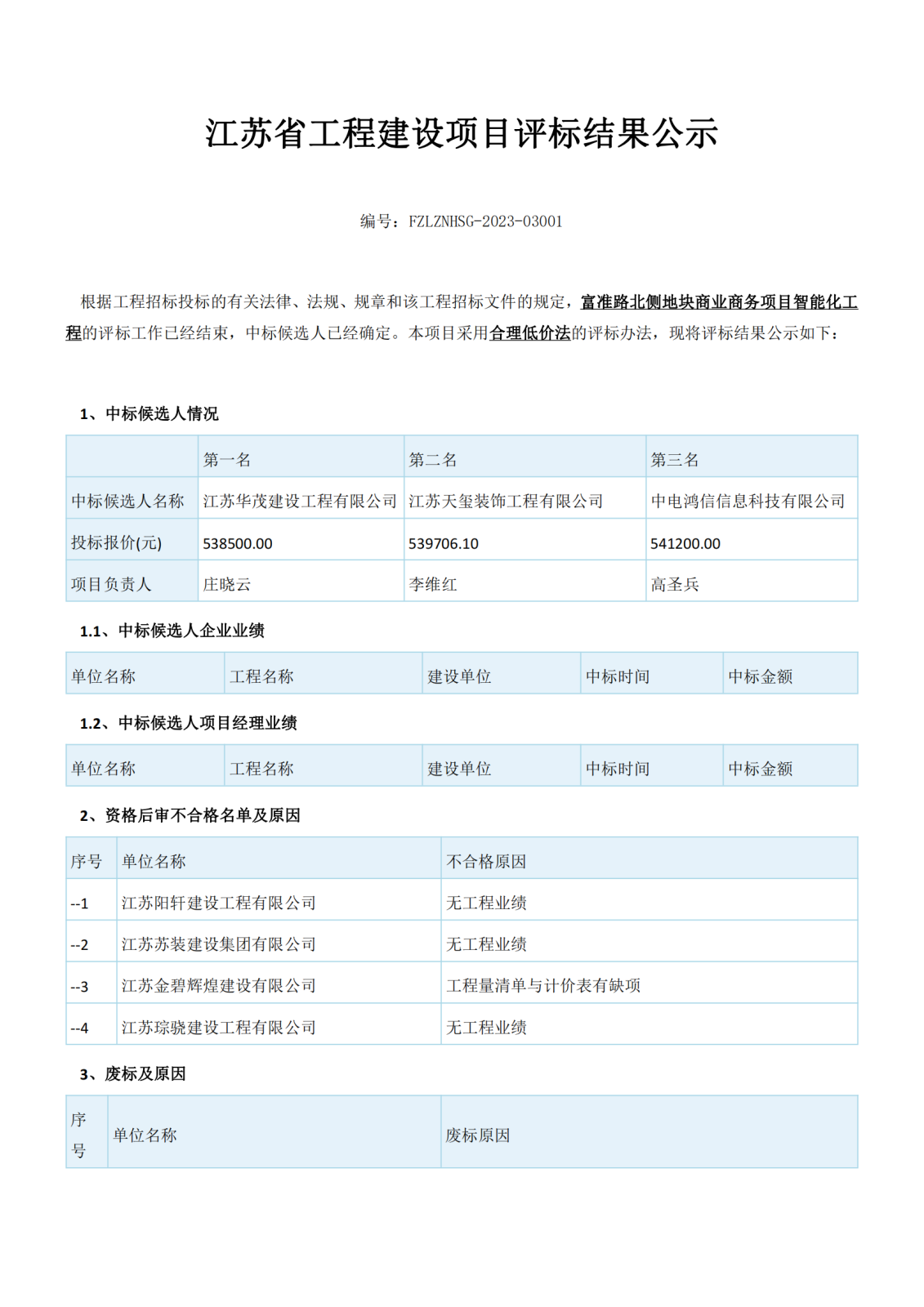 江蘇省工程建設(shè)項目評標(biāo)結(jié)果公示