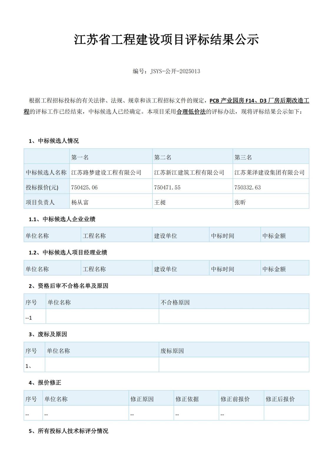 江蘇省工程建設(shè)項目評標結(jié)果公示